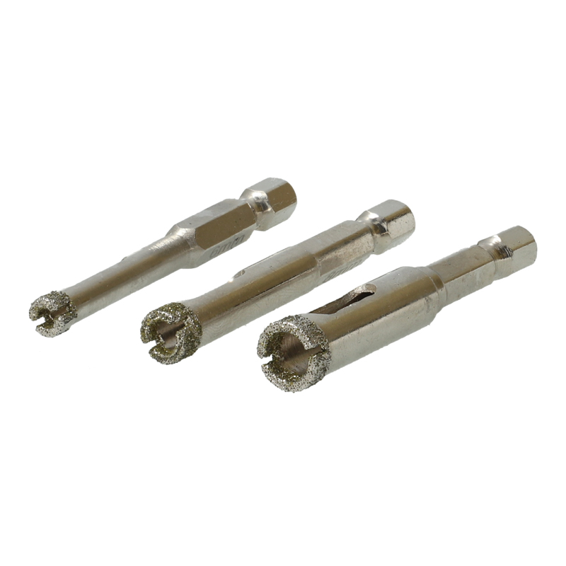 Forets diamant électroplaqués conçus pour percer tous les types de carrelages trouvés dans l‘industrie. Ils assurent également des performances exceptionnelles sur des matériaux durs et cassants comme le marbre, le granit ou la porcelaine.