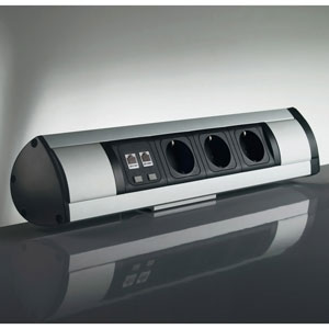 Armature aluminium décor anodisé argent.Borne interne noire.Capot relevable avec fermeture amortie.Passe câble avec brosse d’étanchéité.Fixation par serrage sous plateau épaisseur maxi 30mm.Livré avec câble longueur 2000 mm.