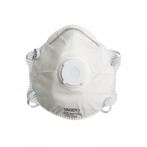 Masque faciales filtrantes en fibres synthétiques non tissées.Barette nasale de réglage.Lanière élastique.Valve d'expiration haute performance.Conforme à la norme EN149.
