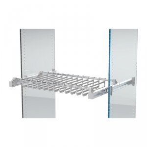 Cadre coulissant extensible pouvant recevoir des corbeilles et cintres (non fournis).Fixations latérales sur coulisses aluminium à sortie partielle : sortie 310 mm.Bras et fixations sont en nylon renforcé par fibre de verre, décor gris alu.Tubes transversaux extensibles en acier chromé.
