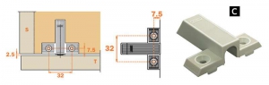Ouverture amortie et fermeture assistée grâce à l’amortisseur et au ressort intégré. Fixation sur la base du meuble avec embase longitudinale clipsable.Perçage du vantail : Ø35 mm.Profondeur du boitier 13 mm.S'adapte sur vantaux de 280 à 400 mm de hauteur.Au delà, utiliser, en complément, la charnière centrale Pacta pour les meubles de largeur supérieure à 900mm.Fixation clipsable sur le caisson par platine à réglage 3D.Encombrement avec habillage :Largeur 30 mm,