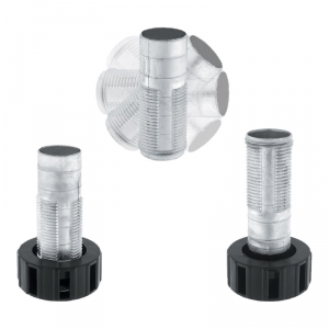 Écartement 24 ou 30 mm de l'axe du pied. Fixation par vis.