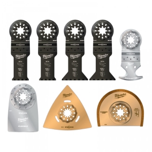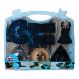 4 lames, 1 plateau de ponçage, 3 abrasifs, 1 adaptateur