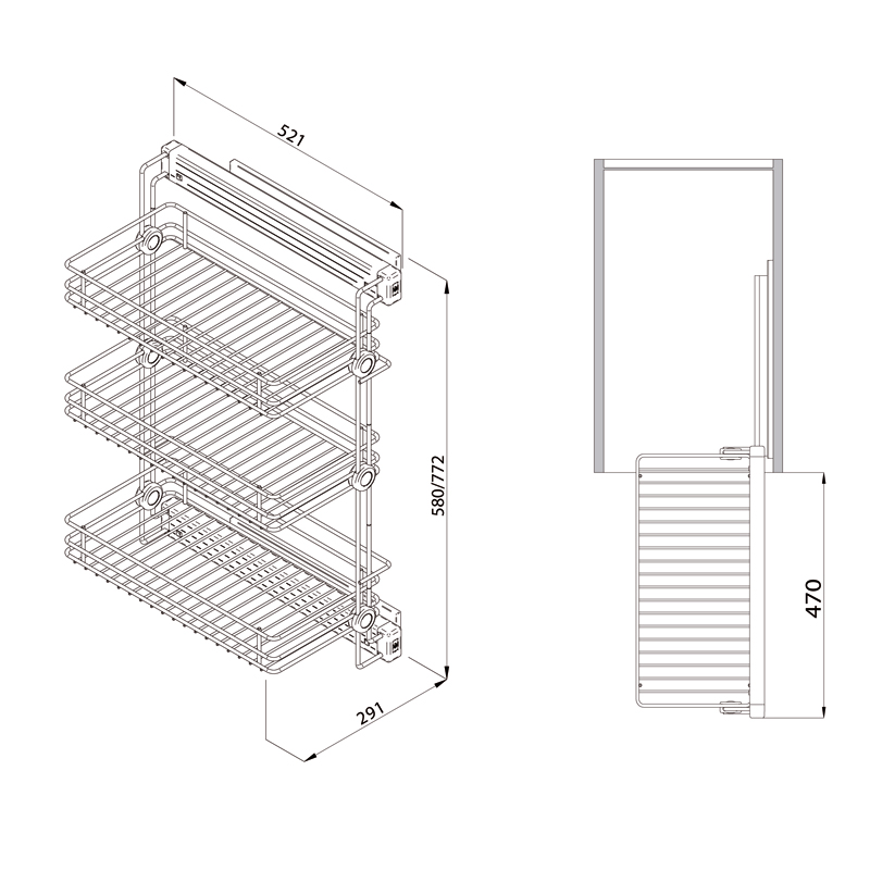 En fil d'acierNon réversible.Sur coulisses avec rappel en fin de course sur amortisseur, sortie totale.Fixation latérale.Livré avec fixations.