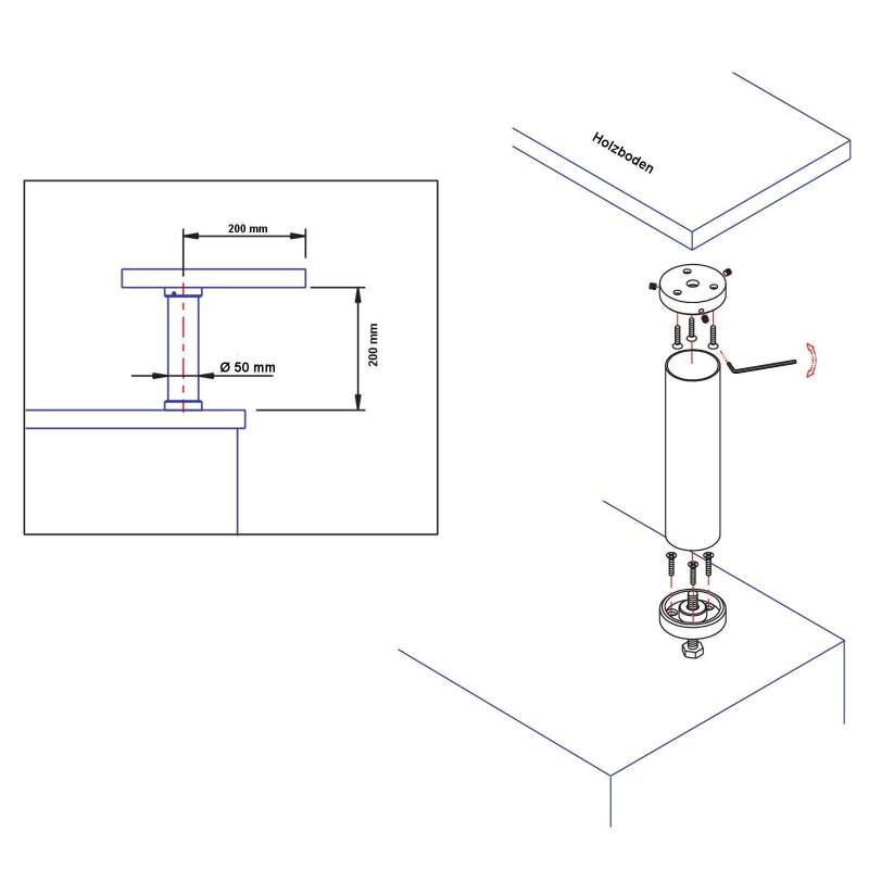 La console est fixée en haut et en bas avec 3 vis à bois. Elle est en outre fixée en bas avec une vis hexagonale M8, de sorte qu'une stabilité maximale est garantie.