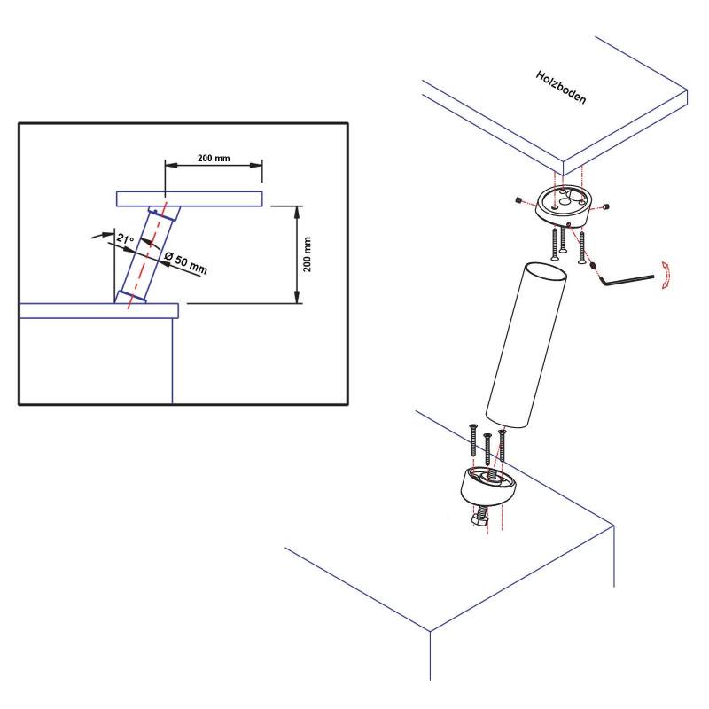 La console est fixée en haut et en bas avec 3 vis à bois. Elle est en outre fixée en bas avec une vis hexagonale M8, de sorte qu'une stabilité maximale est garantie.
