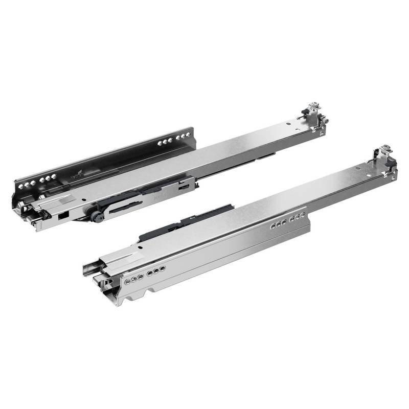 Coulisse invisible sortie totale Actro 5D Push to Open pour tiroir bois.Débit du tiroir identique au format de coulisse Actro YOU et Quadro YOU.Les clips pour le montage par engagement et pour réglage en profondeur sont à commander séparément.Capacité de charge selon la norme EN 15338, niveau 3.