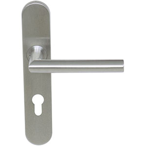 Garniture sur plaques longues 228x38mm, pour porte intérieure.Assemblage : garniture monobloc , avec ressorts de rappel, bagues de guidage sans entretien.Liaison : carré plein HOPPE. Fixation : visible, vis M4 avec douilles filetées. Pour serrure EA 70mm.Pour porte d'épaisseur 40 à 45mm (40mm pour modèle conda/déconda).