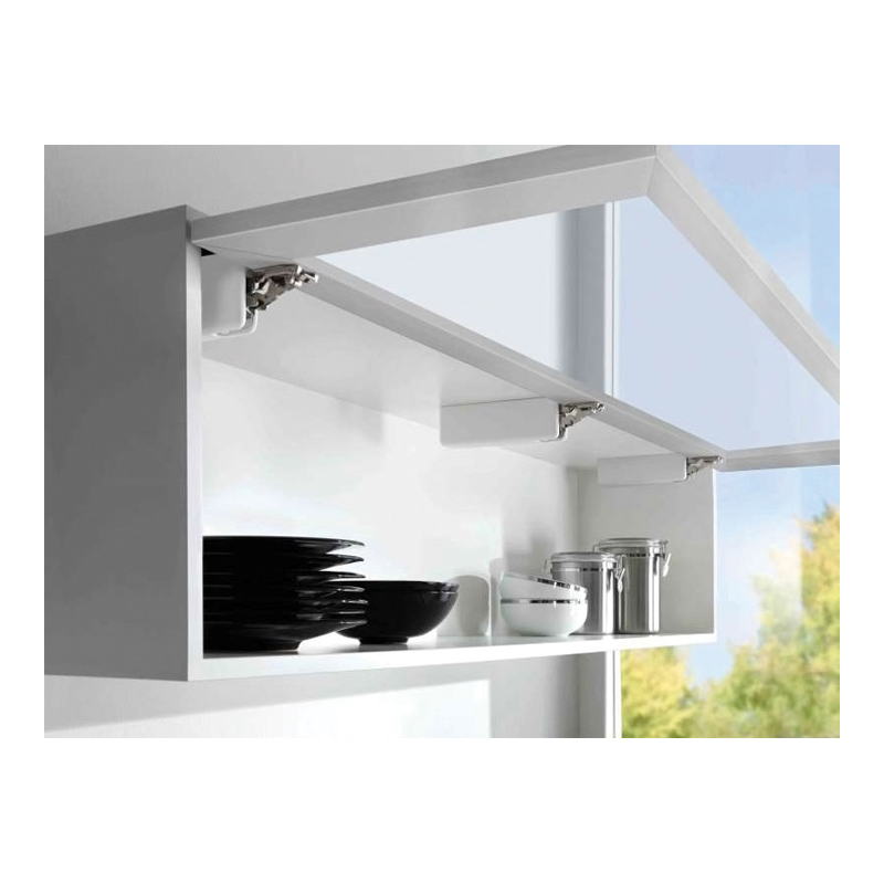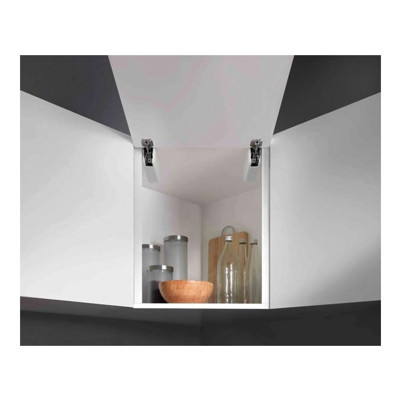 Se visse en applique sur le haut du caisson.Utilisable pour les portes relevables des meubles en angle, lourdes ou de grandes dimensions.Fixée avec vis à bois 4 x 18 mm.Kit comprenant :