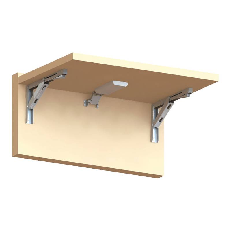 L'équerre se verrouille automatiquement lorsque le volet est en position ouverte.Appuyer sur le levier pour relâcher le verrou.Support avec fonction de charnière dans une unité.Pour une épaisseur de panneau comprise entre 15 et 35 mm.