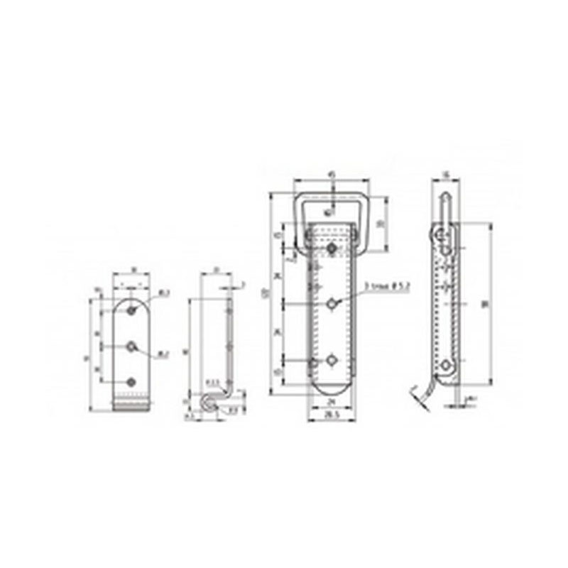Fermeture à levier 7006 en acier zingué livrée avec crochet 7006.50 coudé