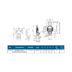 Fermeture à levier 7006 en acier zingué livrée avec crochet 7006.50 coudé Finition acier zingué Fermeture à levier 7006 livrée avec crochet coude 7006.50 Compatible avec 7006.51 Verrouillage à bille Percée fraisée Dimensions AxB : 45 [...]