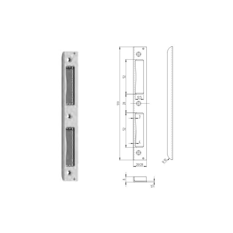 Gâche pour serrure à entailler largeur : 20 mm hauteur : 170 mm