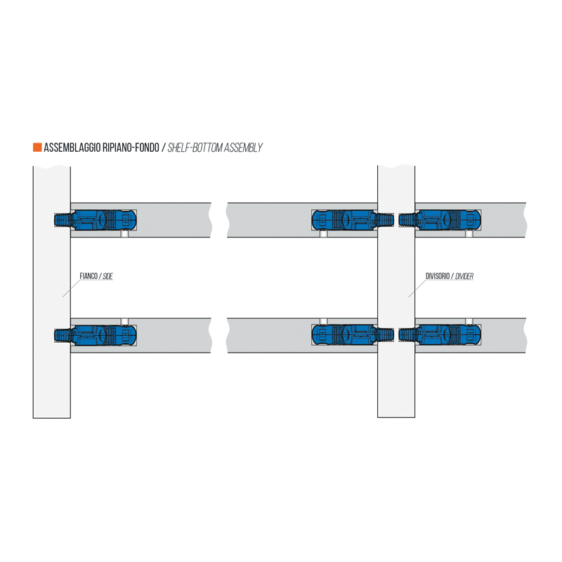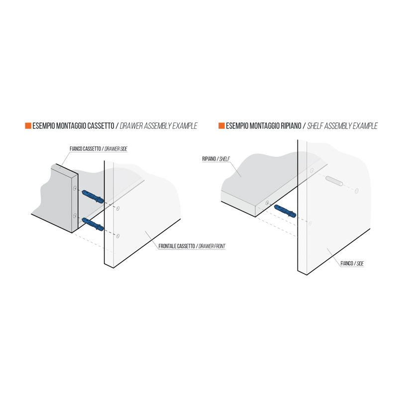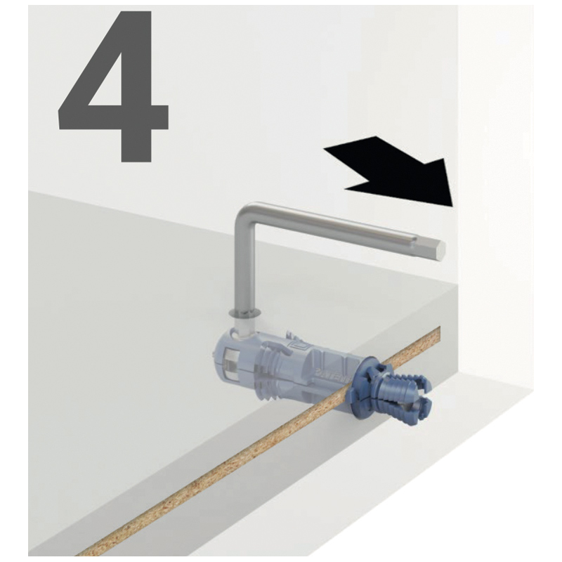 Les goujons d'assemblage BLU permettent un assemblage rapide des panneaux.Ils ne nécessitent pas de quincaillerie supplémentaire.Ils peuvent être insérés manuellement dans le meuble et sont adaptés au pré-montage automatisés en série.Le résultat est robuste grâce aux ailes et bases d'expansion et également discret, seul un trou de Ø 6 mm est apparent.