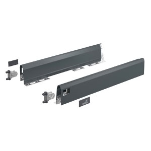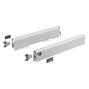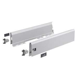 Il se compose de : - 1 paire de côtés de tiroir hauteur 126mm (1 droit + 1 gauche).- 2 attaches façade à enfoncer.- 2 cache latéraux avec logo HETTICH.- Les accessoires de fixation.