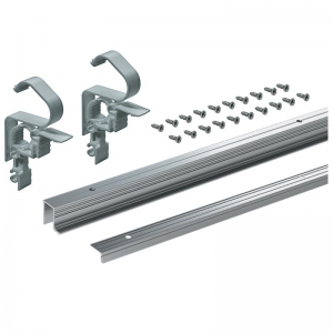 Kit composé de : - 1 profil de coulissage- 2 pinces de montage du profil- Vis de fixationPosition de vissage préperforée.