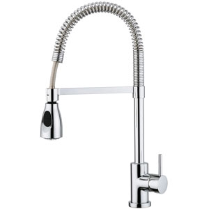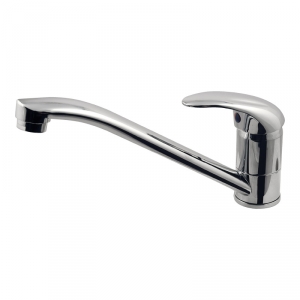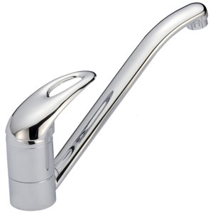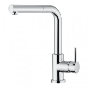 Idéal lorsque l'évier se trouve devant une fenêtre.Corps Ø45 mm avec bec haut rabattable Ø22 mm.Équipé d'une cartouche à tête céramique, mousseur et flexibles d'alimentation inox.Hauteur mitigeur rabattu : 80 mm