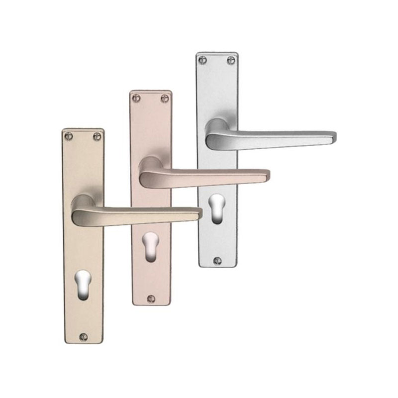 Modèle en aluminium F2 (couleur champagne) Pour serrure apparente donc 1 plaque avec deux béquilles
