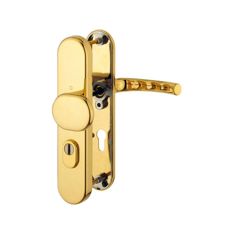 Garniture de sécurité bouton/poignée HOPPE en laiton sur plaques longues avec protecteur de cylindre, pour porte d'entrée :