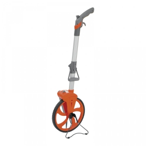 Poignée pistolet avec gomme antiglisse, pour plus de confort à l'utilisation mise à zéro et frein d'arrêt intégrés dans la poignée mesure minimale 10 cm le mécanisme de dénombrement (compteur) fonctionne en avant et en arrière large béquille en métal stable et rétractable pliable pour le transport, équipée d'un bouton de blocage fourni avec sac de transport.