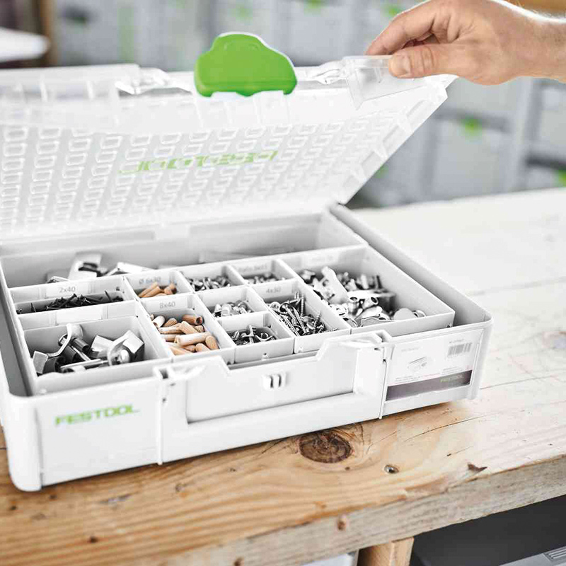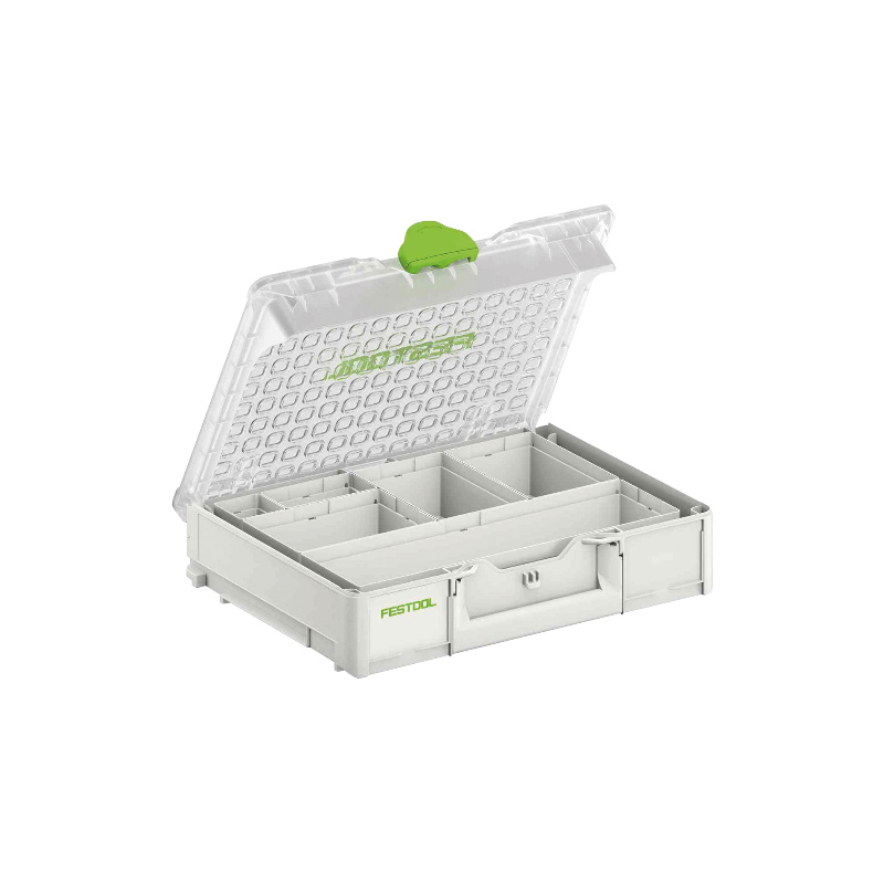 Organizer SYS3 ORG M 89 6xESB, idéal pour trier et transporter les petites pièces soigneusement rangées. Combinables entre eux et avec d'autres Systainer, compatibles avec les systèmes de transport.Identification facile du contenu grâce au couvercle transparent.