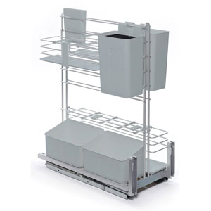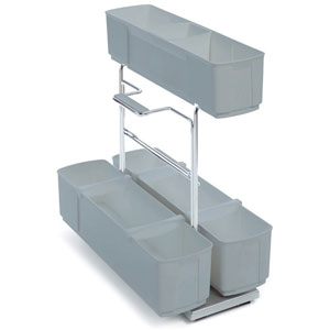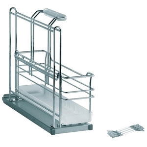 Le panier supérieur pivotant permet d'obtenir plus de surface de rangement.Fixation facile sur le fond du meuble.Amortisseur intégré. Fonds plastique résistant à l'acide, gage de sécurité pour le transport des produits d'entretien.