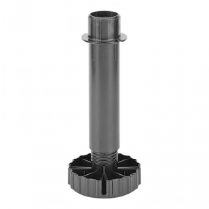 Pied ABS noir Ø 28mm avec vérin et embase de fixation non démontable à 4 trous de vis. Livré avec vis creuse et cache blanc. Filetage M10.