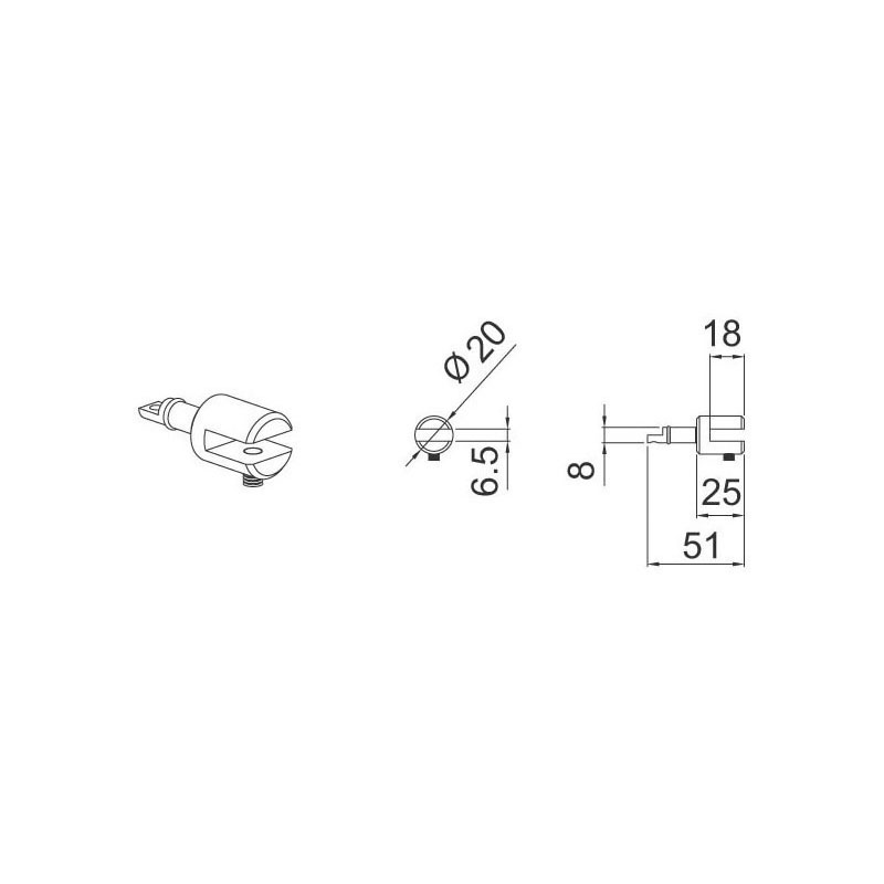Pince pour tablette polycarbonate d'épaisseur 6mm. Serrage de la tablette par vis.Se fixe sur l'insert DOT1. Pour tablette de profondeur maxi 150mm.