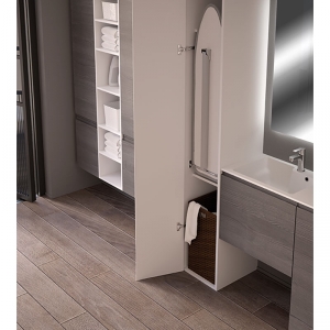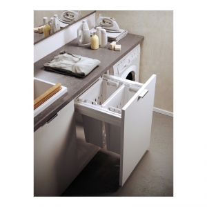 Prua Short est une planche à repasser peu encombrante installée dans un tiroir de taille standard. Ouvrez simplement l'avant du tiroir à charnière pour utiliser la planche à repasser. Prua Short crée une petite table à repasser pratique et optimale à installer dans une buanderie ou une salle de bain, mais aussi dans la cuisine, la chambre ou le dressing, augmentant la fonctionnalité des petits espaces et la polyvalence de n'importe quelle maison. Le mécanisme est fourni avec un plateau en bouleau et un tissu gris résistant à la chaleur.
