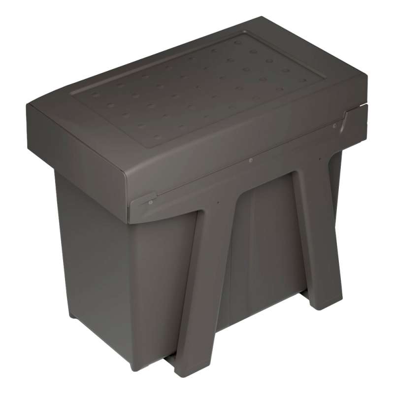 Poubelles pour le tri sélectif avec structure au design innovatif en polypropylène recyclé.Grace à la structure en polypropylène, cette nouvelle solution est produite entièrement à partir de plastique recyclé certifié. Dimensions compactes, grande capacité et sortie totale.
