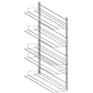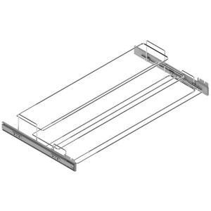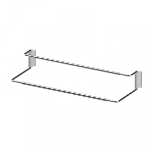 Fixations latérales sur mur ou intérieur de placard.Platine de fixation en nylon renforcé par fibre de verre, décor gris alu.Support extensible en fil d'acier chromé.