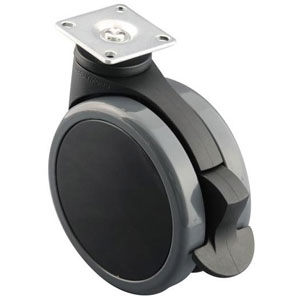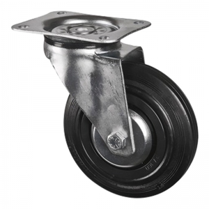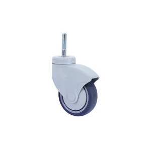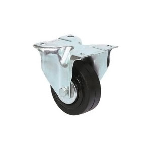 Roulette avec bandage en polyuréthane à moyeu lisse.Axe boulonné.Pivot sur double roulement à billes.Trou de fixation Ø 11mm.