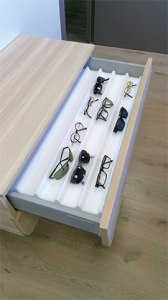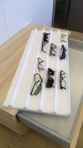 Support pour la présentation d'une paire de lunettes.Pose sur crémaillère Sofadi au pas de 37mm.