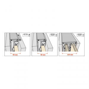Le mécanisme de coulissement, dissimulé dans un espace de 55mm, est facilement réglable et accessible sans avoir à démonter le meuble.Compatible avec le système Exedra2.